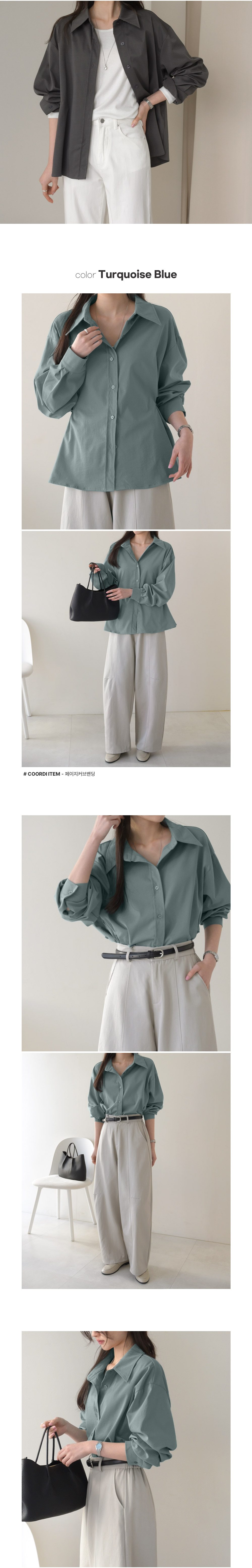寬鬆大尺碼上衣/A字傘狀/雙側抓褶/側腰鈕釦收腰/開襟排釦/寬袖 - 休閒OL上班族簡約百搭素面鈕釦收腰襯衫上衣長袖上衣白色薄荷色深灰色
