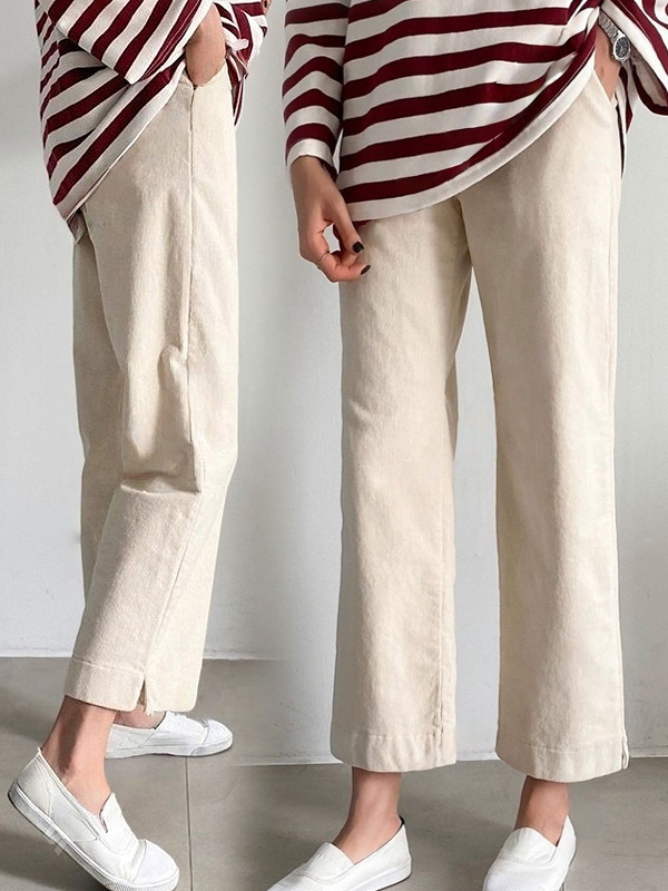 【C55843】韓國AND 厚磅燈芯絨直筒褲-素面後腰鬆緊內刷毛開衩九分褲★★