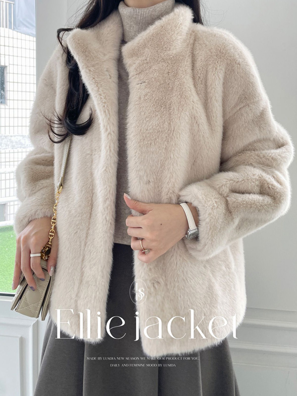 【C55870】韓國LUS 水貂毛立領外套-婚禮素面隱形勾釦毛毛長袖夾克★★