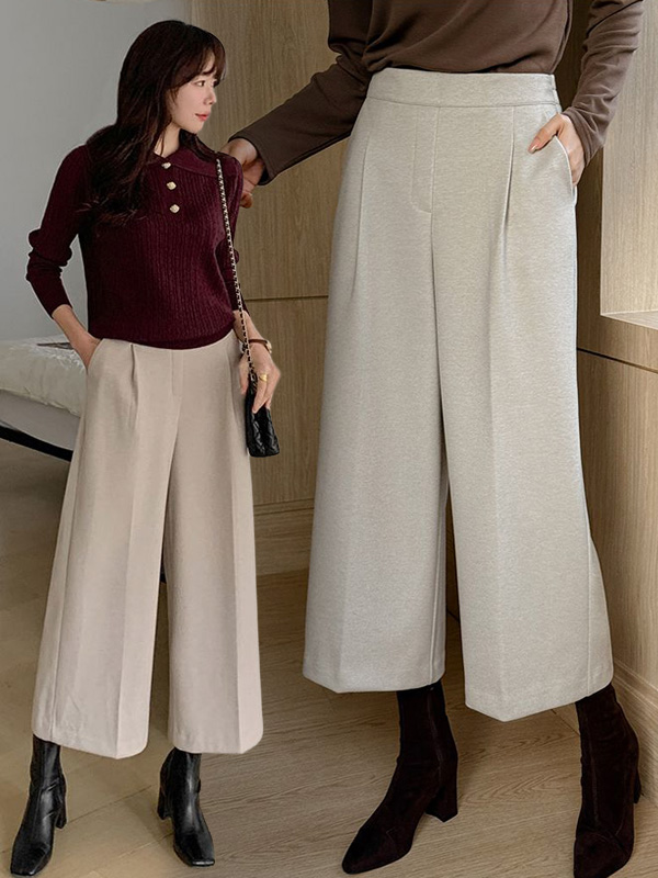 【C51178】韓國ITS 厚磅A字寬褲-絨布素面彈性鬆緊腰立體抓褶九分褲_影片★★