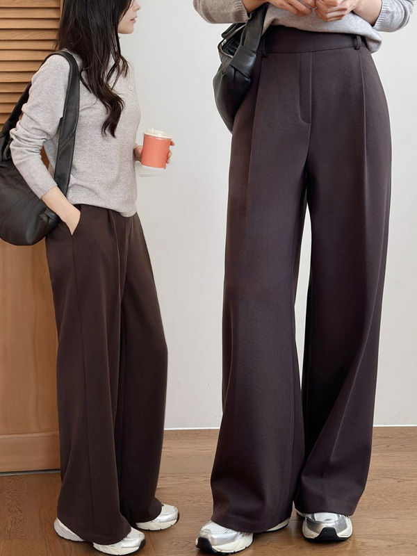 【C55930】韓國PUR 彈力西裝褲-素面內磨毛後腰鬆緊直筒寬褲長褲★★