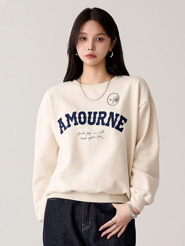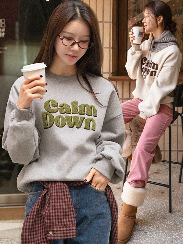 【C55937】韓國PPI 車布字母大學T-圓領內刷毛寬鬆棉質長袖上衣