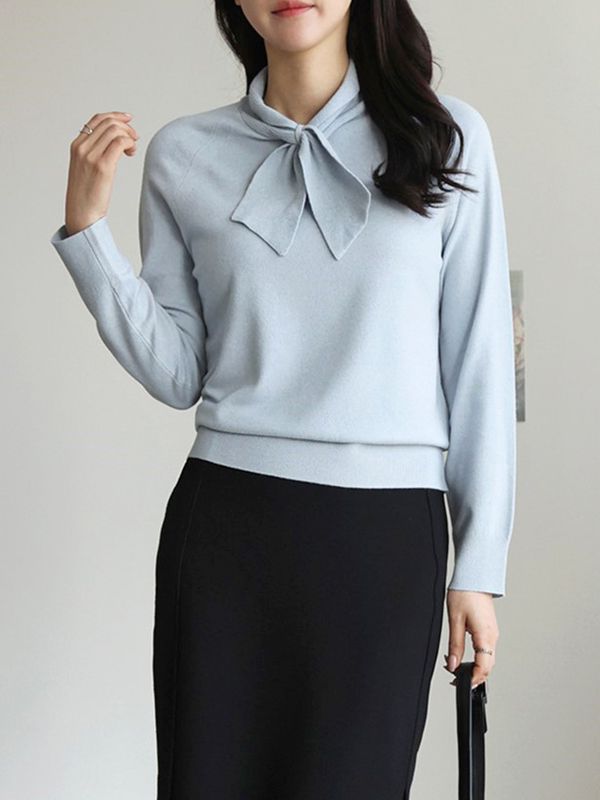 ★限時24H優惠★【C55946】韓國SNY 領巾針織衫-OL素面輕薄柔軟綁結翻領長袖上衣