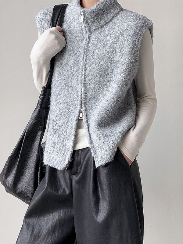 【C60060】品牌 立領針織背心-QQ毛雙開式拉鍊高領無袖外套★★