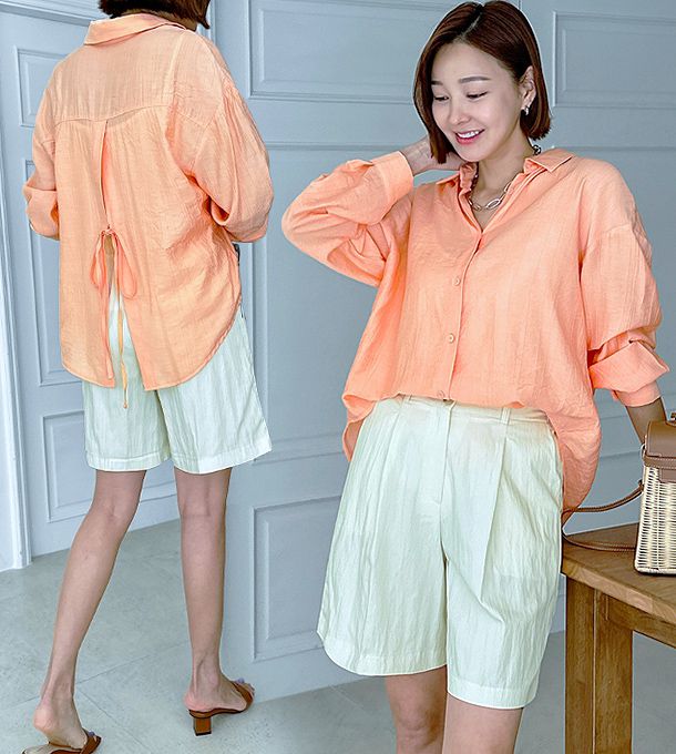 【C53131】韓國MAZ 綁結領襯衫-前短後長OL婚禮素面微光長袖上衣★★