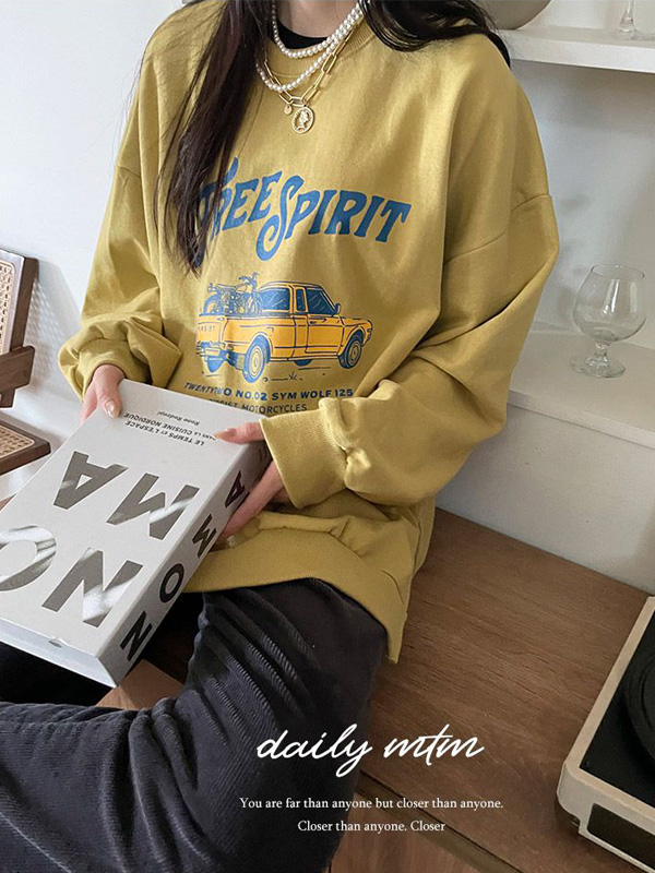 【C55747】韓國MNR 皮卡車印花T恤-復古字母車車寬鬆長版長袖上衣