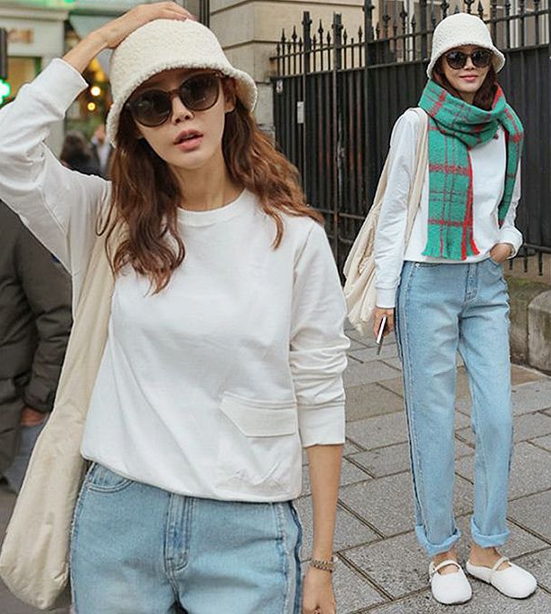 【C53563】韓國BLG 迷你口袋T恤-素面外磨毛滾邊寬鬆長版長袖上衣★★