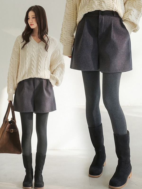 【C55872】韓國CFX 抓褶毛呢短褲-素面後腰鬆緊A字雙口袋打褶腰短褲★★