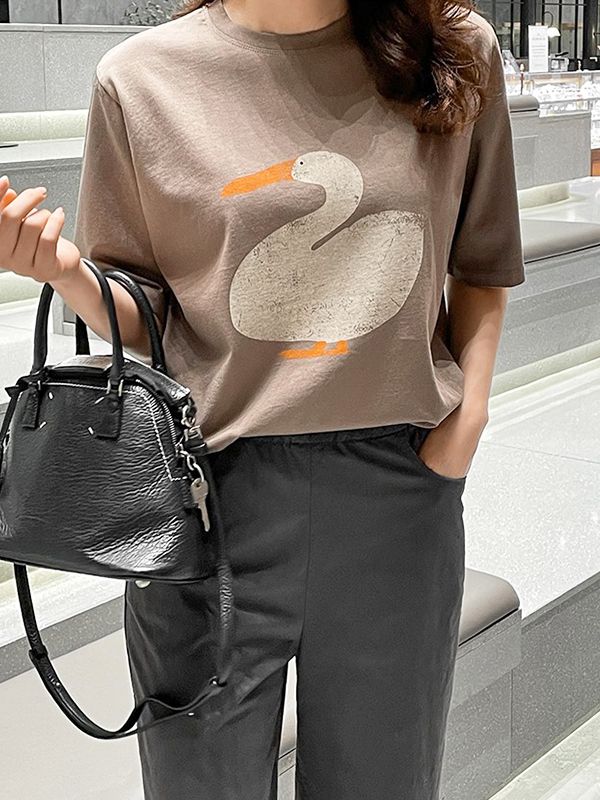 【C54484】韓國MAZ 大白鵝T恤-斑駁感印花圓領側開衩棉質五分袖上衣