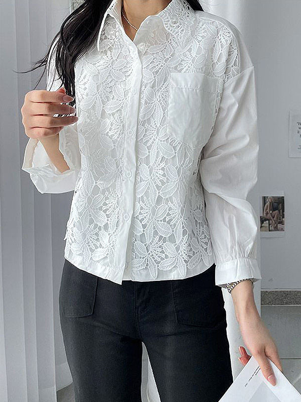 【C73758】品牌 透膚蕾絲袖上衣-花朵刺繡拼接素面V領七分袖T恤_影片★★