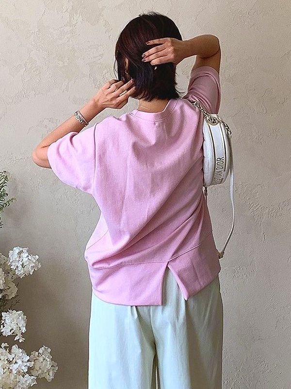 【C52428】韓國AAM 立體車縫上衣-雙開衩後背抓褶寬鬆長版素面短袖★★