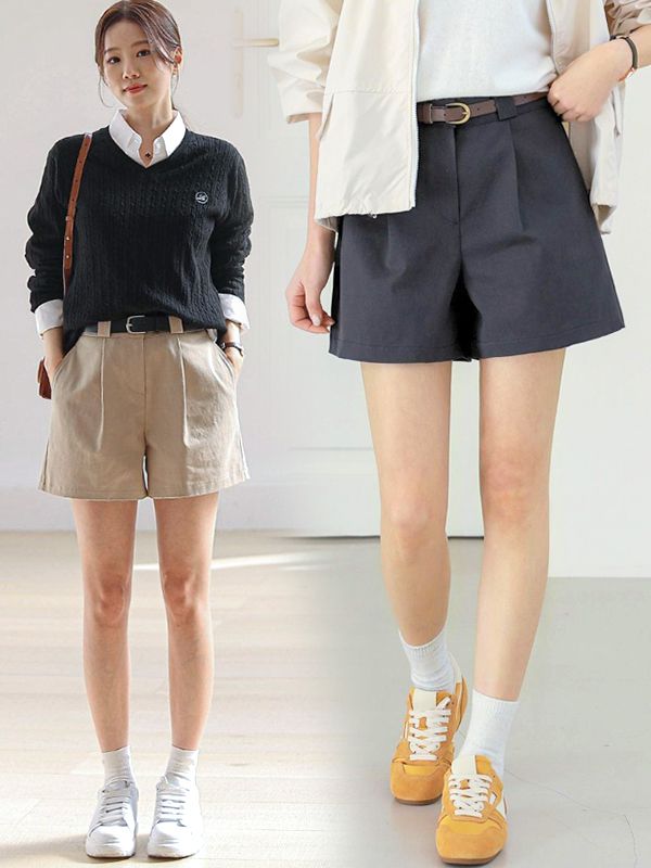 【C53996】韓國CFX 素面純棉短褲-打褶造型OL雙口袋A字西裝褲★★