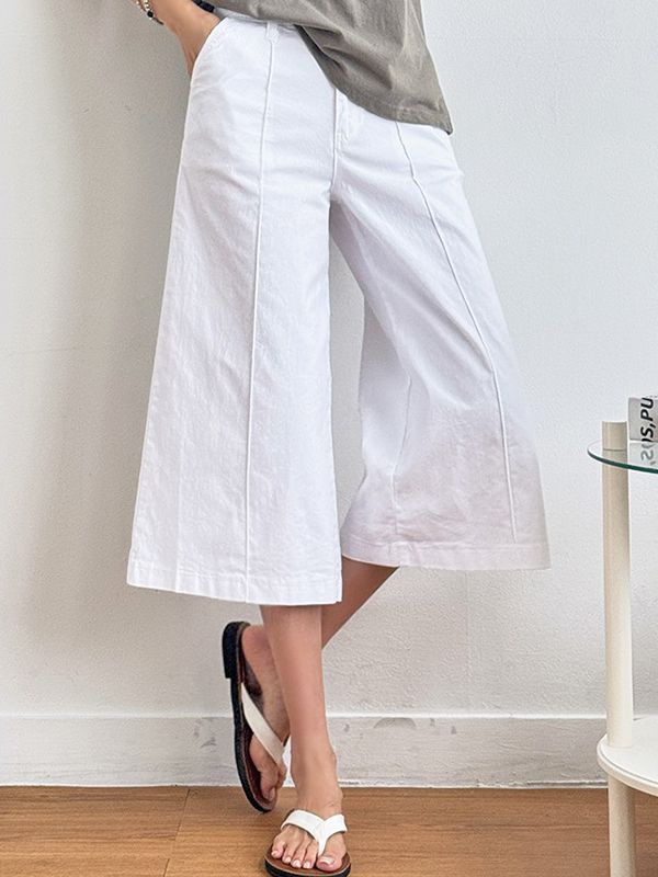 【C55133】韓國JOA 涼感A字寬褲-親膚素面腰內鬆緊帶七分褲牛仔褲