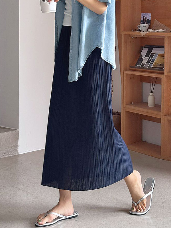 【C55007】韓國MBL 褶襉直筒裙-立體紋路素面全腰鬆緊不收邊長裙