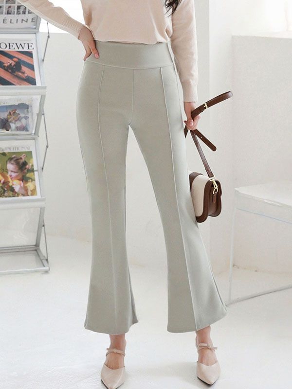 【C55684】韓國DLY 高腰收腹喇叭褲-素面加寬褲頭彈力西裝褲長褲