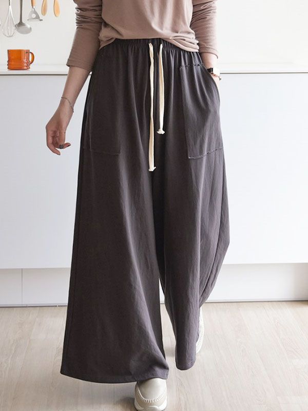 【C55335】韓國BLG 鬆緊腰寬褲-素面寬鬆雙口袋全腰鬆緊闊腿長褲