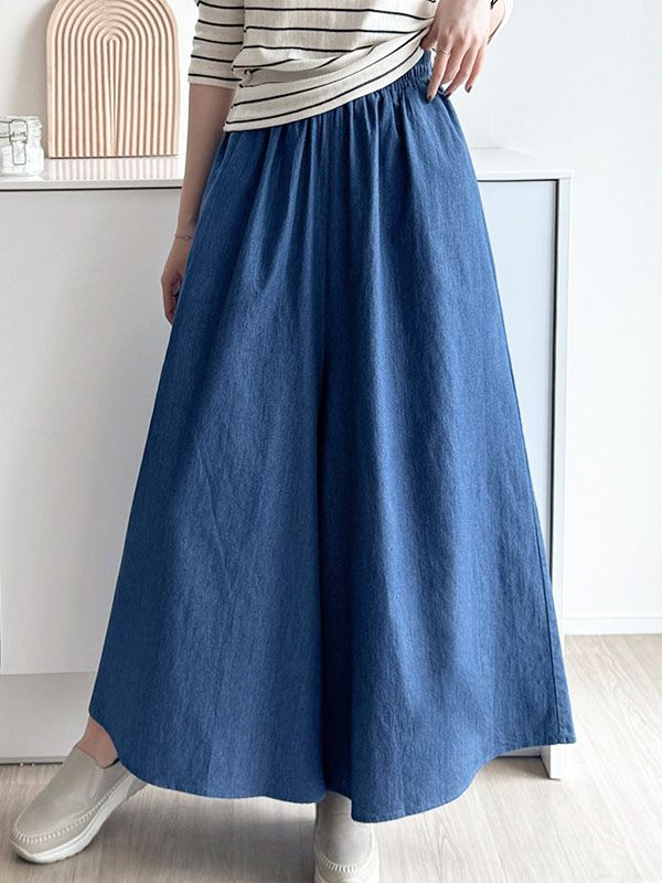 【C55309】韓國DLY 傘狀牛仔褲-素面寬褲全腰鬆緊雙口袋A字長褲★★