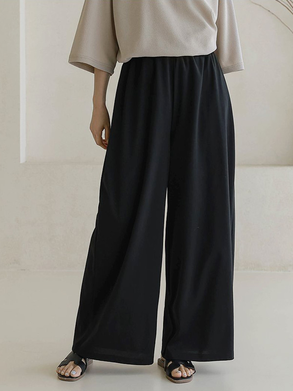【C54765】韓國PPI 寬褶親膚涼感褲-素面彈性腰寬鬆長褲_影片★★