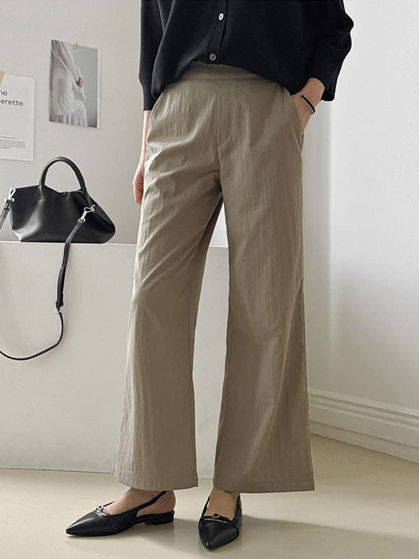 【C55483】韓國MAZ 微喇叭西裝褲-輕盈尼龍素面後腰鬆緊雙口袋長褲
