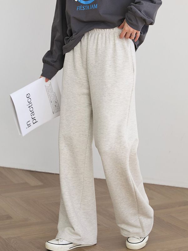 【C55513】韓國PPI 素面直筒運動褲-隱形抽繩鬆緊腰雙口袋寬褲長褲★★