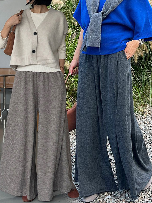 【C55549】韓國COJ 親膚毛呢寬褲-素面全腰鬆緊寬褲管雙口袋落地長褲★★