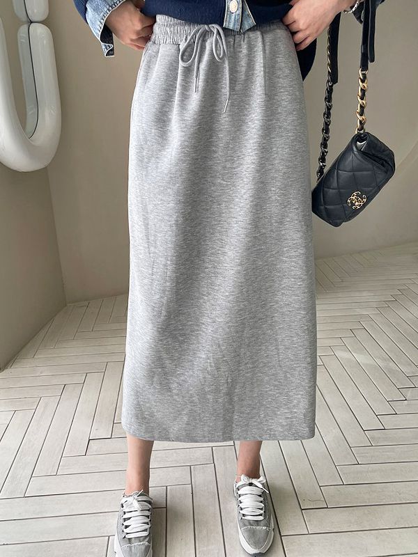 【C55555】韓國MNR 彈力運動裙-抽繩鬆緊腰雙口袋後開衩直筒素面長裙★★