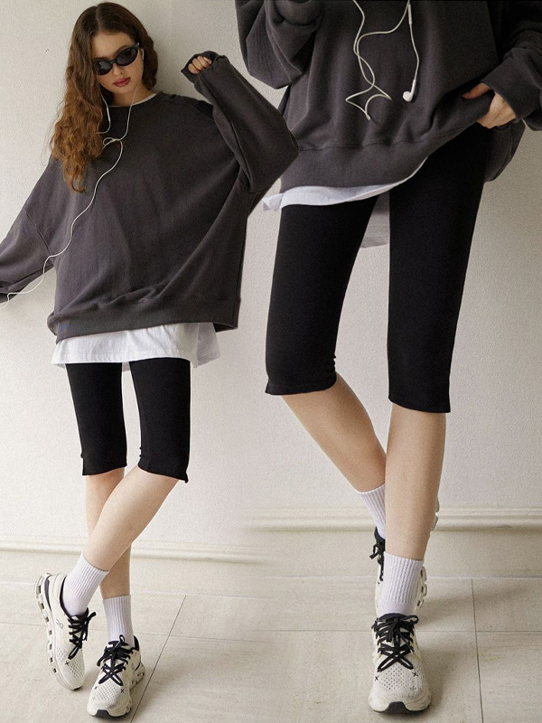 【C53773】韓國JOY 交叉收腹寬褲-素面假兩件拼接雙口袋直筒內搭褲★★