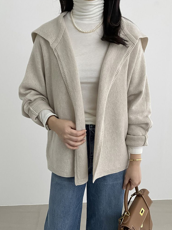 【C55623】韓國MSC 連帽飛鼠袖外套-素面針織寬袖拉鍊抽繩親膚長袖