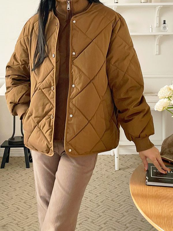 【C53298】韓國PUR 立領鋪棉外套-直條紋壓紋保暖親膚寬鬆素面長袖_影片★★