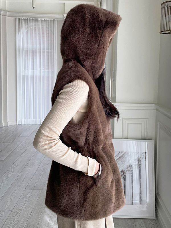 ★限時24H優惠★【C55712】韓國MNR 連帽毛毛背心-素面隱形勾釦內抽繩收腰無袖外套