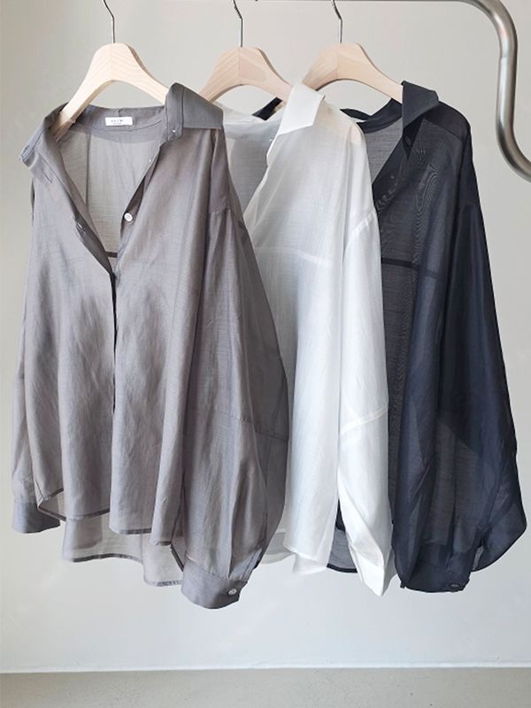 【C50444】韓國MCD 高質感透膚襯衫-素色上衣寬鬆長袖外搭_影片★★