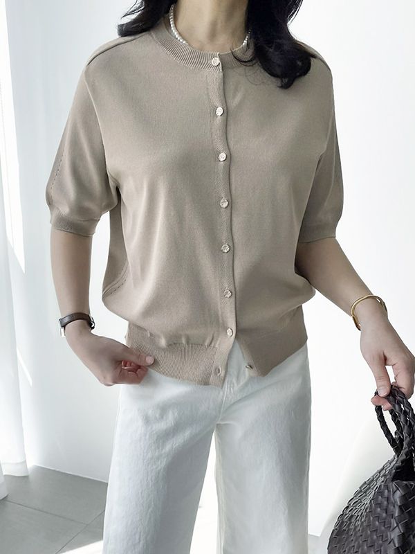 【C55275】韓國JAM 法式金鈕釦外套-寬鬆短版五分袖素面圓領針織上衣_影片★★