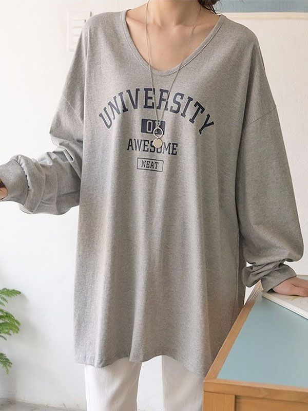 【C55210】韓國DLY 長版字母T恤-圓領個性英文棉質寬鬆落肩長袖上衣★★