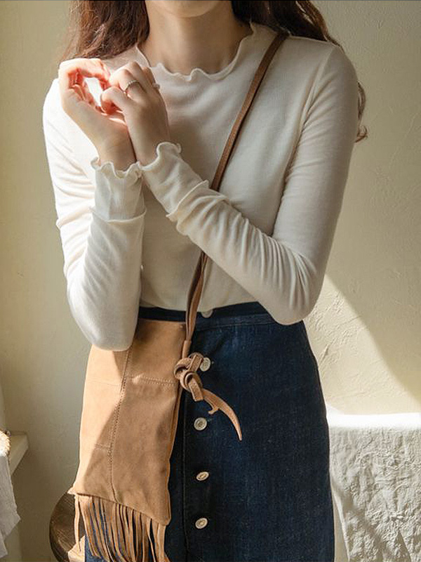 【C53563】韓國BLG 迷你口袋T恤-素面外磨毛滾邊寬鬆長版長袖上衣★★