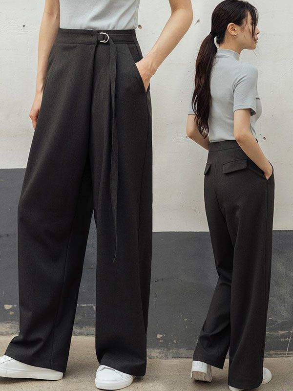 【C55311】韓國CFX 交叉綁繩西裝褲-素面OL隱形拉練直筒落地長褲_影片★★