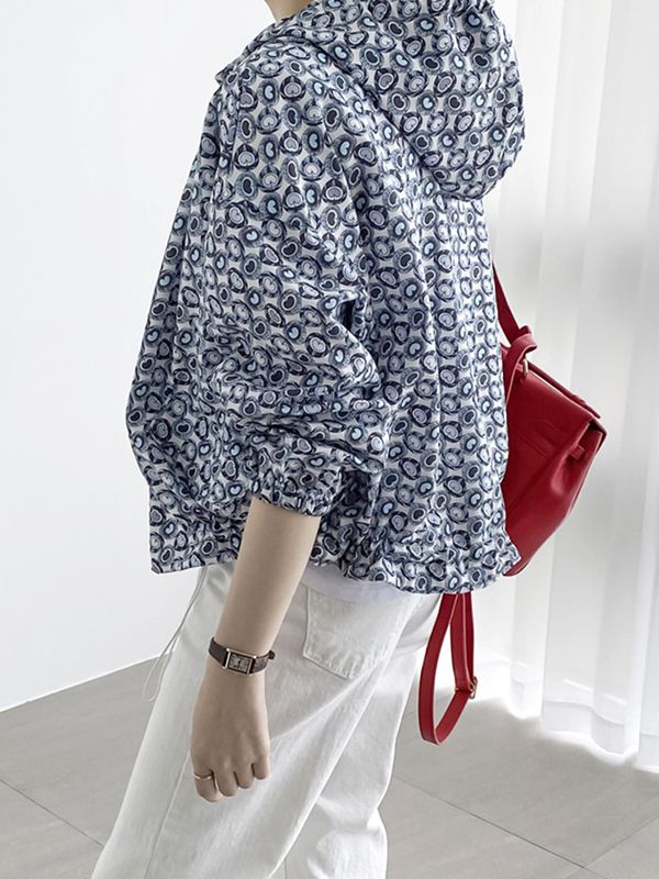 【C55409】韓國RUN 愛心連帽外套-寬鬆排釦可愛印花點點束口抽繩長袖_影片★★