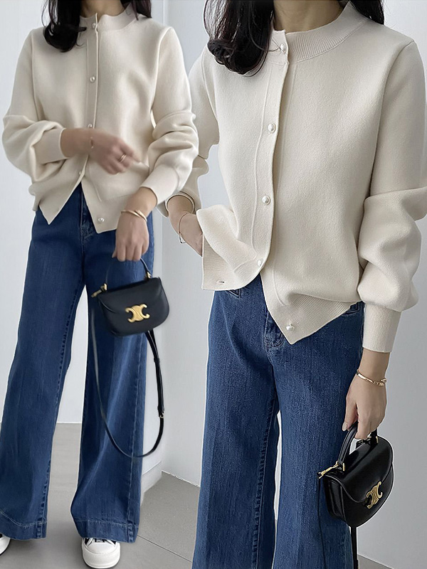 【C73270】MODA品牌 珍珠澎袖上衣-素面泡泡長袖針織衫_影片★★
