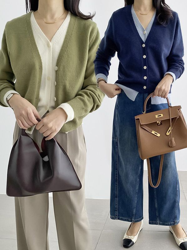【C51131】韓國PUR 針織V領背心-素面渲染雙色織線排釦勾針無袖外套_影片★★