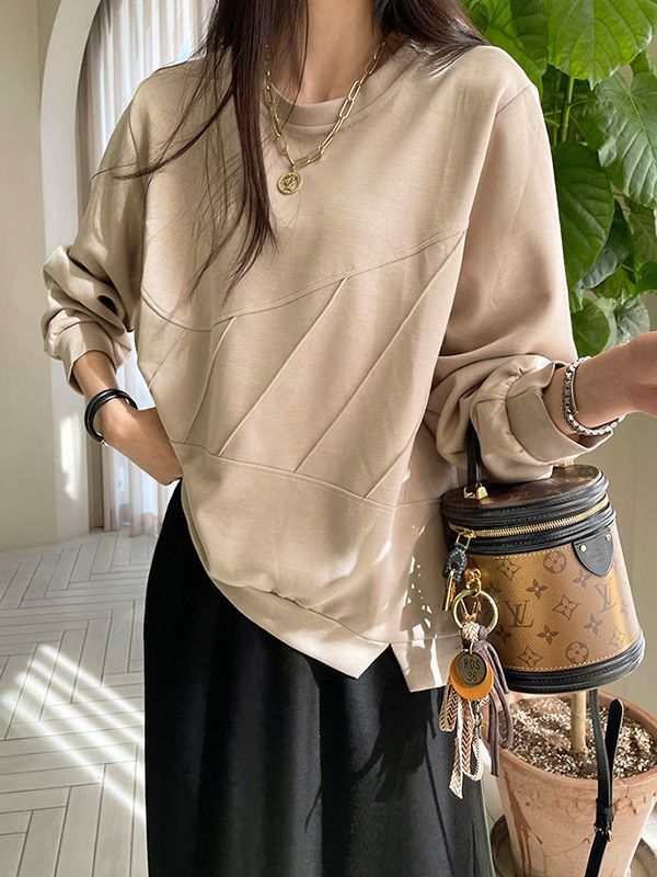 【C55604】韓國MNR 弧形車線上衣-素面彈性抗皺面料圓領雙衩寬鬆長袖★★