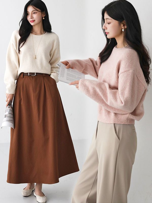 【C53445】韓國CFX 羊毛寬袖上衣-素面好氣色針織長袖慵懶風_影片★★
