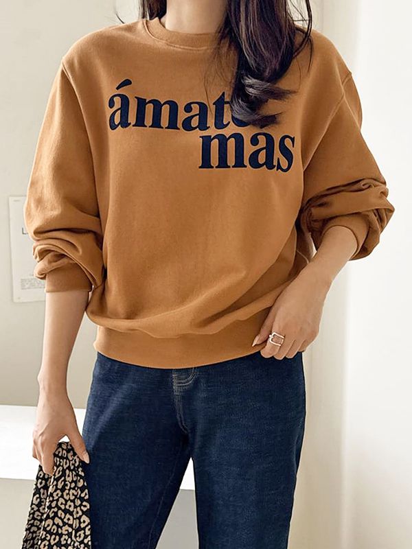 【C51279】韓國STY 絨布字母上衣-厚磅內刷毛立體英文寬鬆長袖T恤★★