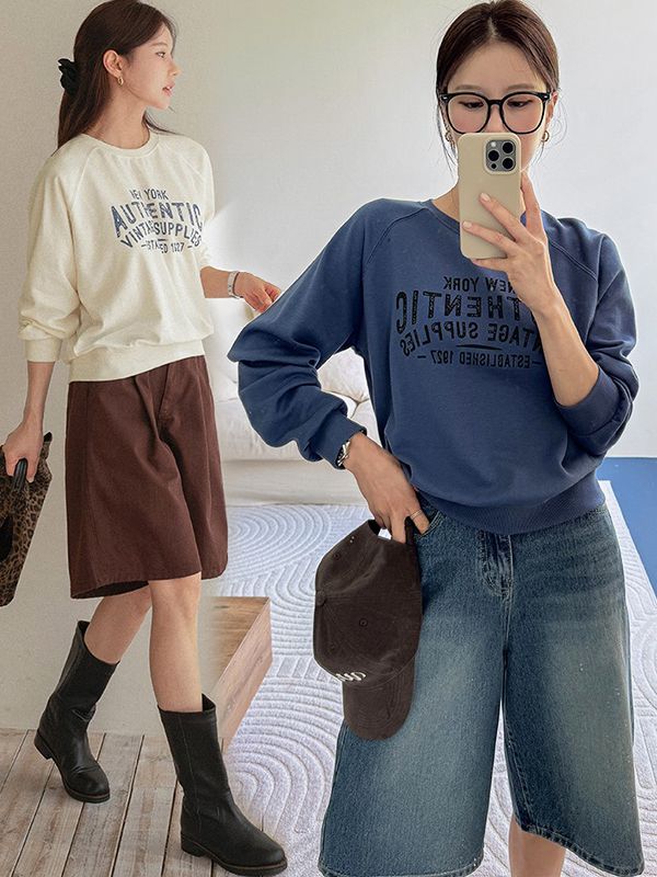 【C55638】韓國PSS 山脈印花大學T-字母圓領後襬開衩布標長袖上衣★★