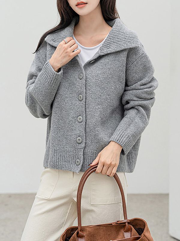 【C55658】韓國MNA 高領針織外套-蓬鬆素面開襟排釦高領長袖針織衫★★