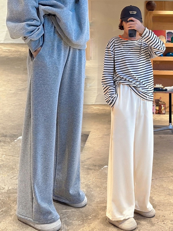 【C55818】韓國TPK 水貂毛寬褲-厚磅內刷毛素面全腰鬆緊直筒長褲★★