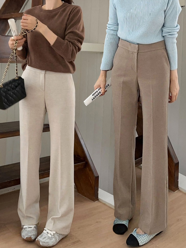 【C55930】韓國PUR 彈力西裝褲-素面內磨毛後腰鬆緊直筒寬褲長褲★★