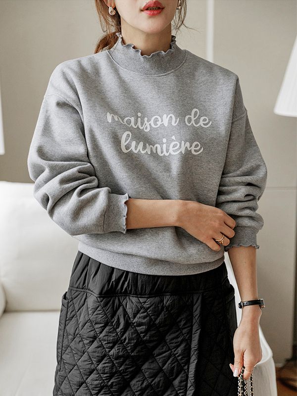 【C55914】韓國JAM 花邊立領大學T-厚磅內刷毛草寫字母長袖上衣★★