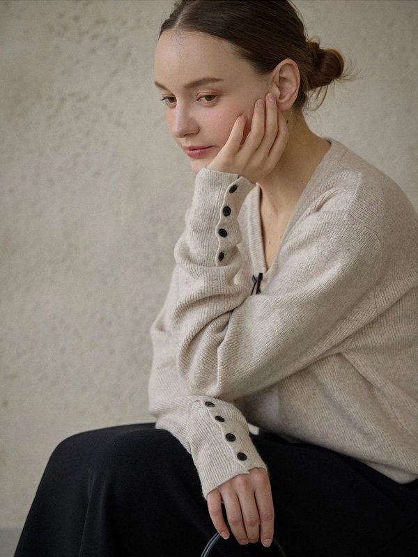 【C55921】韓國DOD 排釦袖針織衫-素面V領袖口鈕釦造型長袖羊毛上衣★★