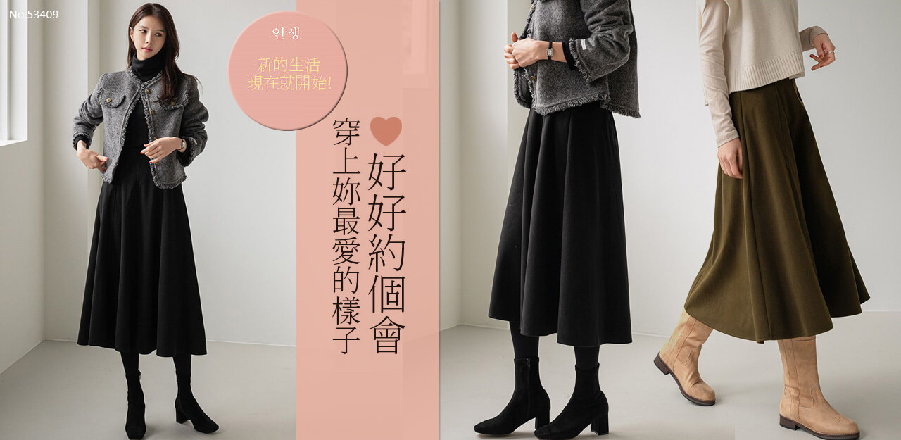 【C53409】韓國CAN 毛呢喇叭裙-素面寬鬆傘狀七分長裙子_影片★★