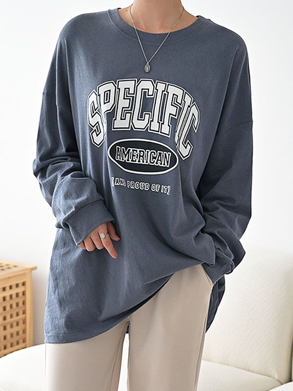 【C55210】韓國DLY 長版字母T恤-圓領個性英文棉質寬鬆落肩長袖上衣★★