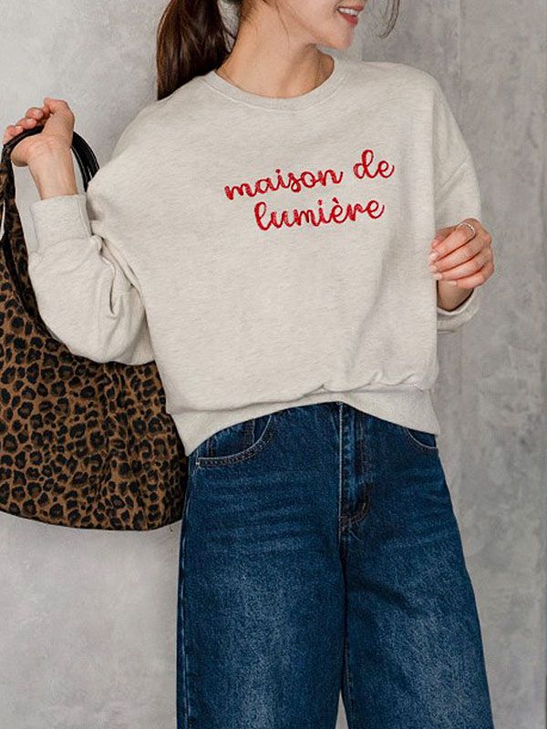 【C55302】韓國CAN 跳色字母大學T-寬鬆圓領刺繡英文短版長袖上衣★★